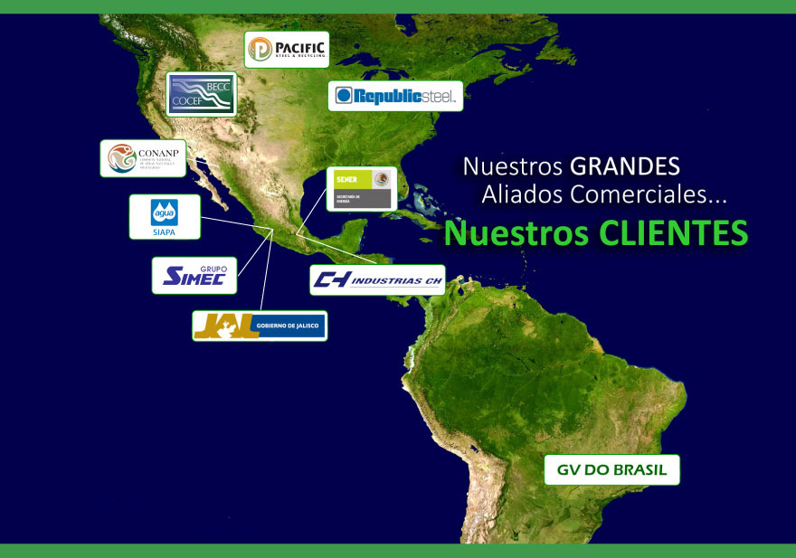 CLIENTES En Environmental Technik estamos comprometidos con el medio ambiente, por ello, ofrecemos a nuestros clientes un servicio de consultoría y gestión integral, satisfaciendo sus necesidades y expectativas, respetando el marco legislativo ambiental. Algunos de los clientes que nos respaldan a lo largo y ancho del continente americano son: México: Grupo Simec, Industrias CH, Secretaría de Energía, CONANP, COCEF, Gobierno de Jalisco, SIAPA, entre otros. USA y Canadá: Republic Steel y Pacific Steel & Recycling Brasil: GV do Brasil |